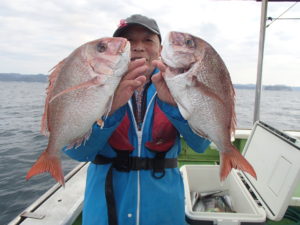 マダイ前半順調!!!ワラサも!!!明日はマダイ&ワラサ船とマアジ&イサキリレー船で出船します。どちらも空席多数ですので皆様のご乗船お待ちしております。マアジ&イサキリレー船は熱烈募集で皆様のご乗船お待ちしております。
