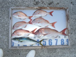 マダイ船 2025年12月11日マダイ, 釣果速報 マダイ終日食い活発で絶好調!!!明日は予報が悪い為出船中止とさせて頂きます。明後日はマダイ船とテップランアオリ船で出船確定しております。どちらも空席多数ですので皆様のご乗船お待ちしております。 本日の釣果 マダイ 0.8~2.7kg 6~9匹 お休み明けでしたが今日も絶好調でした!!!朝から当たりが活発でいい人は開始2時間ほどで4匹上げてその後もポツポツ続き、中々当たりが出なかった方も当たりが出出すと連続ヒットなどもあり今日はほぼ中弛みもなく納竿まで絶好調な1日となれました。 関連