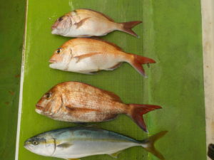 マダイ船 2025年12月14日マダイ, 釣果速報 マダイ前半好調!!!明日もマダイ船で受付中ですので皆様のご乗船お待ちしております。★年内は31日まで出船します。元日、2日、3日お正月休みとなります。4日より通常出船となります。★ 本日の釣果 マダイ 0.5~2.1kg 2~3匹 他にイナダ、クロダイ 前半当たりが良く順調で中盤ダブルヒットなども見られ若干の中弛みもありましたが後半にも当たりが出て皆さんお土産になりました。 関連