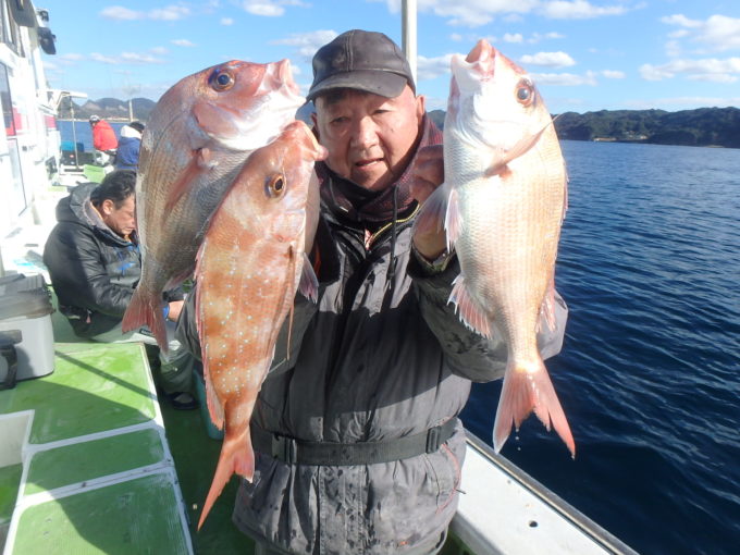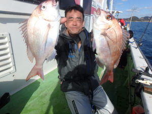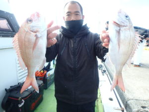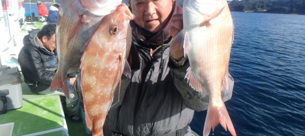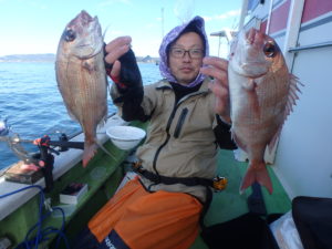 マダイ&イナダ船 2026年1月4日マダイ&イナダ, 釣果速報 マダイ&イナダ終日順調!!!明日も出船します。空席多数ですので皆様のご乗船お待ちしております。 本日の釣果 マダイ 0.5~1.8kg 1~4匹(4匹が2名、2番手3匹が3名) 他にイナダ、クロダイ、カイワリなど 新年あけましておめでとうございます。新年初出船となりました。前半から当たりが良くダブルヒットなどもあり出だしは好調でその後もポツリポツリではあったものの食いが終日続き結果的にオデコなしと初釣りとしてはいい釣果となれました。 関連