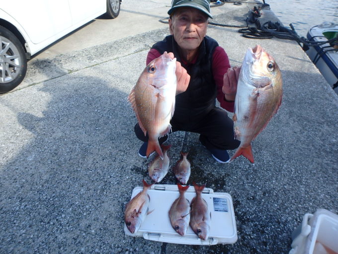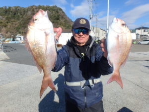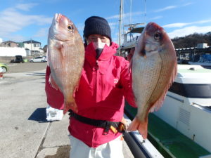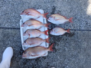 マダイ船 2026年1月9日マダイ, 釣果速報 マダイ終日好調!!!明日も出船します。空席多数ガラガラですので皆様のご乗船お待ちしております。 本日の釣果 マダイ 0.6~2.0kg 2~5匹 他にハナダイ、クロダイなど 好調でした!!!朝の1投目からダブルヒットで始まりその後も当たりが続き開始1時間ほどで全員顔を見ることが出来、中盤以降もポツポツと当たり続け納竿まで当たりが出ました。 関連