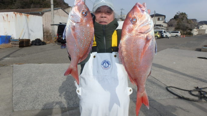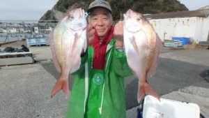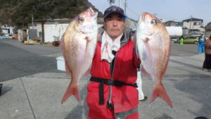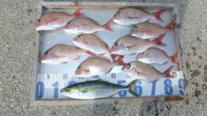 マダイ船 2026年1月15日マダイ, 釣果速報 マダイ前半バリバリで絶好調!!!明日も出船します。空席多数ですので皆様のご乗船お待ちしております。週末土曜日、日曜日も空き多数ですのでご乗船お待ちしております。 本日の釣果 マダイ 0.5~2.3kg 3~10匹(5匹以上が4名) 他にイナダ、クロダイなど 前半絶好調でした。開始早々は中々口を使ってくれませんでしたが暫くして当たりが出出すとダブルヒットやトリプルヒット連続ヒットとバリバリ状態が暫く続き中盤以降もポツポツ当たり結果5匹以上の方が4名と好釣果となれました。 関連