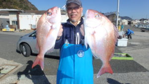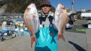 マダイ船 2026年1月16日マダイ, 釣果速報 海悪くも前半好調!!!明日も出船します。空席多数ですので皆様のご乗船お待ちしております。 本日の釣果 マダイ 0.5~3.1kg 0~4匹(4匹が2名0は1人) 朝は風が残り釣り辛い状況でしたがポツポツ当たりが続き中盤から湖畔にかけては失速したものの良型もでてまずまずの釣果となれました。残念ながらオデコの方が1名でした。 関連