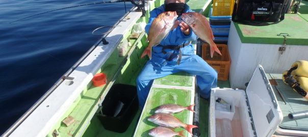 マダイ船 2026年1月17日マダイ, 釣果速報 マダイ前半活発!!!明日も出船します。空席多数ガラガラですので皆様のご乗船お待ちしております。 本日の釣果 マダイ 0.5~2.1kg 0~5匹(2番手4匹、0は1人) 他にイナダ、ハナダイ、クロダイなど 前半潮の流れが良く当たり出すとダブルヒットやトリプルヒットなどもあり好調でした。中盤以降は失速したものの殆どの方が顔を見ることが出来ました。残念ながらオデコの方が1名でした。 関連