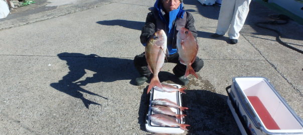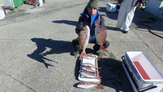 マダイ船 2026年1月23日マダイ, 釣果速報 マダイ連日絶好調!!!明日も出船します。空席多数熱烈募集で皆様のご乗船お待ちしております。★27日、28日はスポーツニッポン新聞社総会出席の為お休みとなります★ 本日の釣果 マダイ 0.6~2.0kg 3~7匹 絶好調でした。!!!朝の1投目から当たりが出たと思ったらその直後にはダブルヒット!!さらに当たりが続き開始30分とたたずに皆さん顔を見ることが出来てその後も当たりが続き中盤以降はポツポツになったものの好釣果となれました。 関連