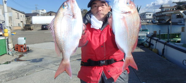 マダイ船 2026年1月30日マダイ, 釣果速報 マダイ前半順調も!!!明日はマダイ船で出船、明後日はヤリイカ&スルメイカ船で出船予定となります。どちらも空席多数ですので皆様のご乗船お待ちしております。 本日の釣果 マダイ 0.6~1.5kg 1~3匹 他にハナダイ、クロダイなど 前半当たりが良くポツポツながら食いがありましたが中盤以降はエサ取りの猛攻で苦戦しました。 関連