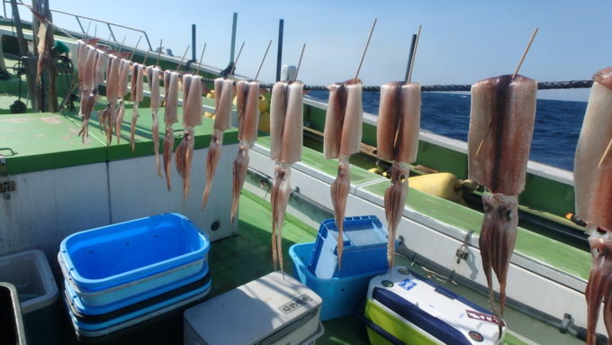 スルメイカ船 2026年2月15日スルメイカ, 釣果速報 スルメ海悪く!!!ヤリイカ&スルメイカ船の次回出船は21日(土)に出船予定です。明日はマダイ船で出船しますので皆様のご乗船お待ちしております。18日は定休日でお休みとなります。 本日の釣果 スルメイカ 30~45cm 5~23匹 終日南西の風で海が悪く釣り辛い状況が続きバラシもかなり見られましたが皆さん何とかお土産になりました。ヤリイカは混じった程度でした。 関連