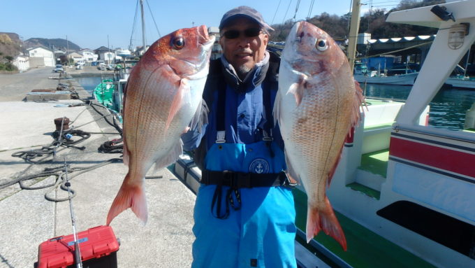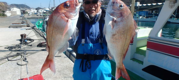 マダイ船 2026年3月12日マダイ, 釣果速報 マダイ中盤から!!!明日もマダイ船で出船します。空席多数ですので皆様のご乗船お待ちしております。14日(土)はマダイ船で出船、15日(日)はヤリイカ船で出船します。どちらも空席多数ですので皆様のご乗船お待ちしております。 本日の釣果 マダイ 0.6~2.0kg 0~2匹 メダイ 1.8~3.2kg 2~5匹 前半は厳しい状況が続きましたが中盤から潮が効きマダイとメダイが入り混じりながらポツポツ当たりが出ました。 関連