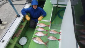 マダイ船 2026年3月16日マダイ, 釣果速報 マダイ終日食い好調!!!大型も!!!明日もマダイ船で出船します。空席多数熱烈募集で皆様の皆様のご乗船お待ちしております。 本日の釣果 マダイ 0.6~3.8kg 3~6匹 他にカンパチ、クロダイなど 朝から食いが好調でした!!!開始1投目から当たりが出てその後も連続して当たりが続き実釣開始30分とかからず皆さん顔を見ることが出来ました。その後も間が空くもののポツポツ当たりが出て大型のハリス切れもあったりもしましたが皆さん好釣果となれました。 関連