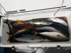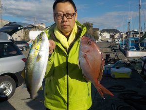 イナダ船 2016年12月10日イサキ, 釣果速報イサキ, 勝山, 千葉県 本日の釣果 イナダ 1.0~2.1kg 1~17匹 マダイ0.3~3.5kg 0~1匹 マハタ 2.6kg 船中1匹 朝の内勝山沖でマダイとイナダの顔を見てから金谷沖へ移動しました。 到着直後はパッとしませんでしたが旋回してから当たりだしダブルヒットやトリプルヒットもあり手返しのいい人は入れ食い状態が暫く続きました。中盤から後半にかけては失速してしまいましたが慣れない方も顔を見る事が出来て皆さんお土産になりました。 関連