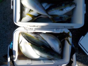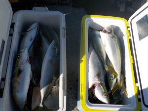 座席に余裕を取って2隻での出船となりました。朝は勝山沖でイナダとマダイの顔を見てから金谷沖へ移動しました。到着1投目から5人同時ヒットなどありましたが長続きせず9時頃に象背根へ移動しました。こちらは到着して直ぐに入れ食い状態が始まり短い時間でしたが中弛みもありその後後半にも入れ食いタイムがあり貸し竿の方もいましたが殆どの方がクーラー満杯となる事が出来ました。釣果は2隻での高低です。大船長のつぶやきも更新されておりますのでご覧ください。明日も出船が確定しております。空いておりますので皆様のご乗船お待ちしております。