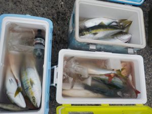 イナダ船 2016年12月22日イサキ, 釣果速報イサキ, 勝山, 千葉県 絶好調!!! 本日の釣果 マダイ 0.3~1.2kg 1~5匹 イナダ 1.0~2.2kg 7~43匹 イシダイ 1.0~1.6kg 0~4匹 朝から当たりが良く開始1時間ほどで全員イナダ、マダイを顔を見る事が出来てその後も象背根へ移動するまでポツポツ当たりました。象背根へ移動してからは入れ食いが終日続きお客様全員クーラー満杯となる事が出来ました。明日は予報が悪い為出船中止とさせていただきました。明後日から通常出船となります。空いておりますので皆様のご乗船お待ちしております。 関連