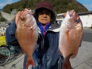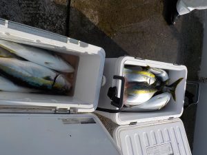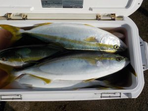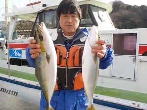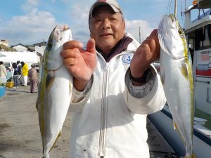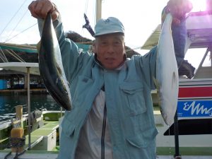 マダイ&イナダ船 2016年12月25日イサキ, 釣果速報イサキ, 勝山, 千葉県 本日の釣果 マダイ 0.3~1.2kg 0~4匹 イナダ 1.0~2.0kg 2~21匹 朝のポイントではポツポツながらも誰かしらの竿が曲がり順調でした。その後象背根へ移動したところ出だしにバタバタと当たったものの後が続かず小旋回した所で当たりだし中盤からはダブルヒットやトリプルヒットもあり好調でした。 関連