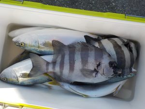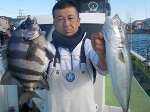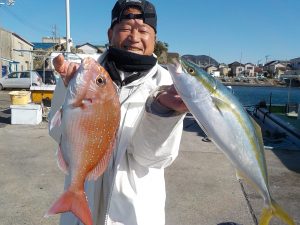 マダイ&イナダ船 2017年1月5日イサキ, 釣果速報イサキ, 勝山, 千葉県 本日の釣果 マダイ 0.3~1.6㎏ 0~4匹 イナダ 1.0~2.1㎏ 2~11匹 イシダイ 0.8~1.5㎏ 0~3匹 終日北の強風が吹いて釣り辛い中当たりはまずまずで中盤に象背根へ移動してからはダブルヒットやトリプルヒットもあり船酔いしながらも頑張って頂けたかたも皆さんお土産には十分な釣果となれました。明日以降はマダイ&イナダ船、ヤリイカ&スルメイカ船で受付中です。イカ船はスルメも狙うので18cmと11㎝の仕掛けをご用意ください。 関連