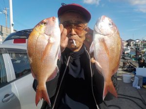 朝の富浦沖では開始1投目からダブルヒットに始まり1時間ほどで全員マダイかイナダの顔を見る事が出来ました。その後象背根へ移動したところ程なくイナダが当たりだしその中でマダイも混じる状態で終日ポツポツ当たり順調なくいがありました。今後はマダイをメインに狙いますがイナダが混じる場合がありますので仕掛けは4号8~10mと6号6mをご用意ください。