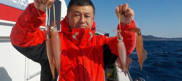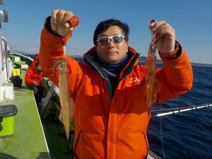 ヤリイカ船 2017年1月26日ヤリイカ, 釣果速報ヤリイカ, 勝山港, 千葉県 本日の釣果 ヤリイカ 25~42cm 7~18匹 久しぶりの出船となりました。前半はスルメ狙いで1流し1投が殆どでしたがいい流しには6点掛けなども見られました。中盤からはヤリイカに切り替え潮が速くなって来た為1流し1投が続きポツポツながらも乗りがありました。今後も随時出船していきますので皆様のご乗船お待ちしております。尚、スルメも狙う時が有りますので仕掛けは18cmと11cmの仕掛けをご用意ください。 関連
