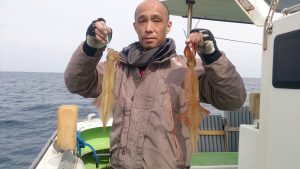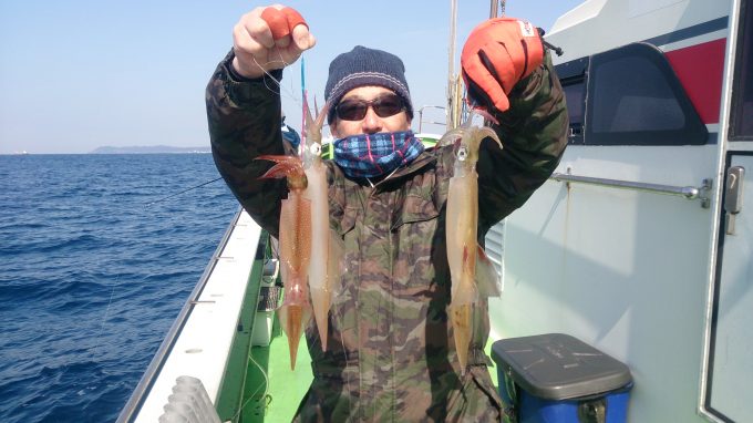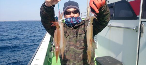 ヤリイカ船 2017年3月18日ヤリイカ, 釣果速報ヤリイカ, 勝山港, 千葉県 マダイ船の釣果は大船長のつぶやきで更新されますのでご覧下さい。 本日の釣果 ヤリイカ 20~48cm 11~29匹 朝は洲崎沖でスルメの顔を見てから白浜沖へ移動しました。終日ポツポツの乗りで派手な多点掛けは少なかったですが皆さん平均に獲れてお土産になりました。 明日のヤリイカ船は締め切らせて頂きました。 関連
