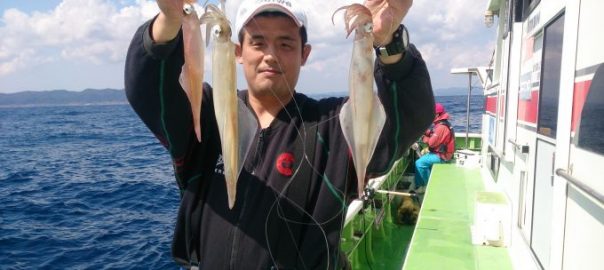 ヤリイカ船 2017年4月3日ヤリイカ, 釣果速報ヤリイカ, 勝山港, 千葉県 マダイ船の釣果は大船長のつぶやきで更新されますのでご覧下さい。 本日の釣果 ヤリイカ 22~45㎝ 9~22匹 朝は洲崎を攻めてから白浜沖へ移動しました。到着直後に最高5点掛けなど見られましたがその後は単発が多くポツポツの乗りが終日続き数的には伸びませんでしたが良型混じりで皆さん平均して取る事が出来ました。 救命胴衣の着用をお願いします。無い方はお貸ししますので受付の際にお申し付け下さい。 関連