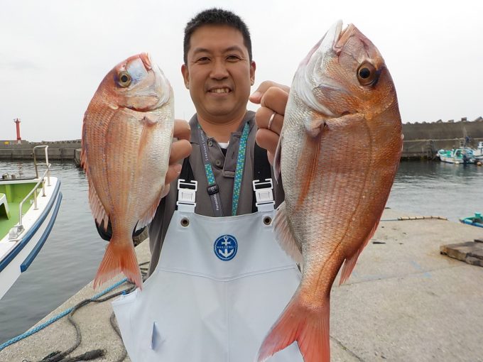 マダイ船 2017年4月20日マダイ, 釣果速報コマセ釣り, マダイ, 勝山港, 東京湾 本日の釣果 マダイ 0.4~2.3㎏ 0~2匹 前半に当たりが多くダブルヒットなどもありましたがその後は潮が動かず食い渋りの1日となってしまいました。 ライフジャケットの着用をお願いします。無い方はお貸ししますので受付の際にお申し付け下さい。 関連