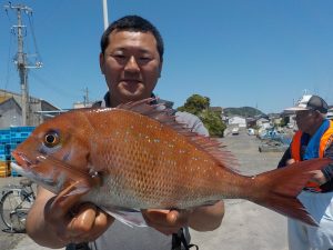 前半潮の流れが良く朝の1投目から当たりが出て、その後もポツポツ食いがあり開始1時間ほどで全員顔を見るころが出来ました。中盤から後半にかけては拾い釣になりましたが今日は数こそ出ませんでしたが1.0㎏クラスは1匹だけで後はすべて2㎏オーバーと良型が揃いました。明日はマルイカ船とマアジ&イサキ五目での出船となります。どちらもガラガラですので皆様のご乗船お待ちしております。