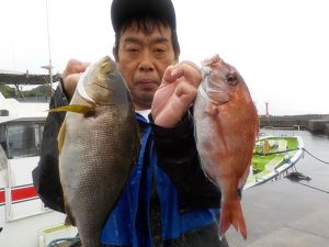 マダイ船 2017年5月26日マダイ, 釣果速報コマセ釣り, マダイ, 勝山港, 東京湾 明日、明後日はマダイ船、マアジ&イサキ五目船でのしゅっせんとなります。 本日の釣果 マダイ 0.6~1.1kg 1~2匹 イサキ 25~40cm 3~5匹 前半は反応はあるものの当たりが悪かったですが中盤からイサキの良型が混じり後半ポイント移動後にマダイがポツポツ当たり順調でした。明日はマダイ船、マアジ&イサキ五目船での出船となりますので皆様のご乗船お待ちしております。 関連