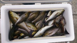 マアジ&イサキ船 2017年6月26日イサキ, 釣果速報イサキ, 勝山, 千葉県 マアジ&イサキ好調!! 本日の釣果 マアジ 28~40cm 15~27匹 イサキ 22~33cm 23~36匹 朝のマアジ狙いは深場ではあったものの食いは良く皆さんお土産を確保してからイサキに変更しました。イサキでは前半潮が速く1流し1~2回程度の投入で潮が止まってからは入れ食いが続き終日好調でした。両魚合計50匹超が半数でした。 明日もマアジ&イサキ船、スルメ船で受付中です。スルメ船は明後日28日出船が確定しておりますのでご乗船お待ちしております。 関連