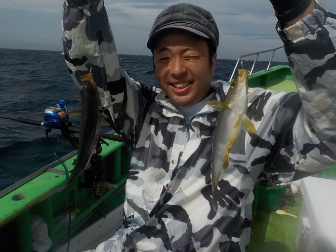 イサキ船 2017年7月1日イサキ, 釣果速報イサキ, 勝山, 千葉県 明日はスルメ船も出船します!!空いておりますので皆様のご乗船お待ちしております。 本日の釣果 イサキ 21~32㎝ 23~50匹 マアジ 25~40cm 8~32匹 本日座席に余裕を取って2隻での出船となりました。 終日ウネリと風で釣り辛かったですがマアジとイサキの食いは絶好調でした。 大船長のつぶやきでも更新されていますのでご覧下さい。 明日はスルメにも出船が確定しております。イサキ&マアジ船共に空いておりますので皆様のご乗船お待ちしております。 関連