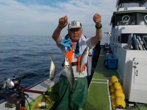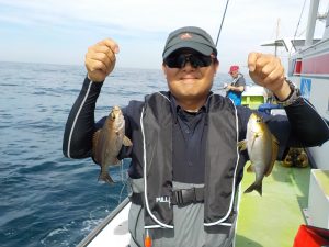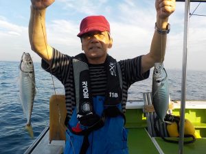 イサキ&マアジ船 2017年7月3日イサキ, 釣果速報イサキ, 勝山, 千葉県 本日の釣果 イサキ 20~32cm 10~50匹 マアジ 30~40cm 13~25匹 朝のマアジ狙いは到着1投目から入れ食い状態で始まり良型が多かったので皆さんバッチリお土産確保してからイサキ狙いに変更となりました。イサキも同様で終日食いが良く少し早目の沖上がりとなりました。 関連