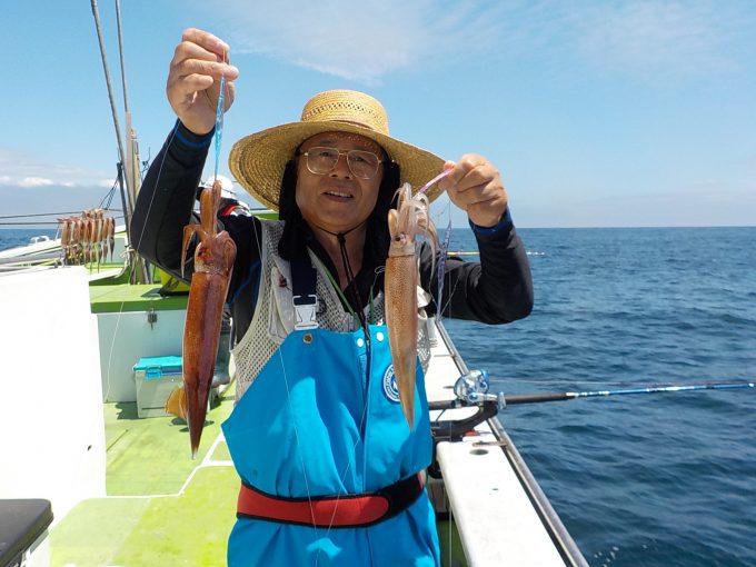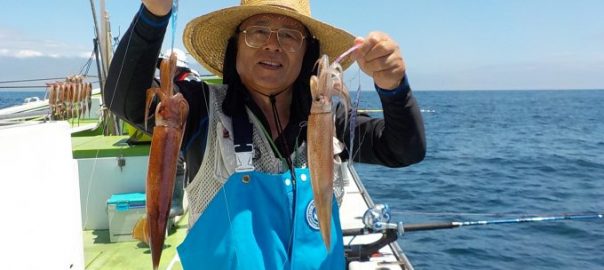 スルメイカ船 2017年7月31日スルメイカ, 釣果速報スルメイカ, 勝山港, 千葉県 明日もスルメ船、イサキ&マアジ船で受付中です。 本日の釣果 スルメイカ 25~42cm 8~41匹 朝は洲崎沖で皆さん顔を見てから白浜沖へ移動しました。 ポツポツの乗りで中盤に大きな反応に当たり手返しのいい方は多点掛けの連続が続き数が伸ばせました。 関連