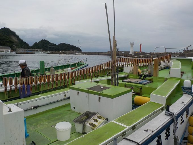 スルメイカ船 2017年8月2日スルメイカ, 釣果速報スルメイカ, 勝山港, 千葉県 イサキ&マアジ船の釣果は大船長のつぶやきで更新されますのでご覧下さい。 本日の釣果 スルメイカ 25~42cm 42~64匹 朝から乗りがあり多点掛けを交えながら順調で中弛みの時間帯もありましたが後半に1流し数回出来る流しが多々あり数が伸ばせました。 関連