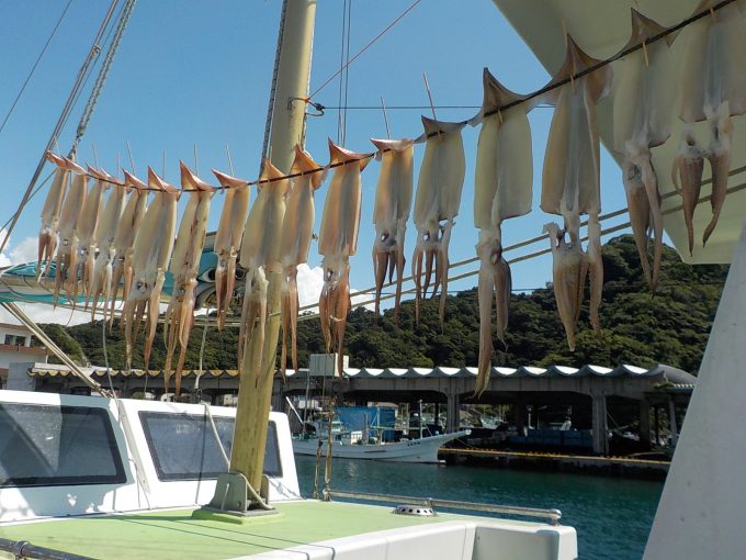 スルメイカ船 2017年8月18日スルメイカ, 釣果速報スルメイカ, 勝山港, 千葉県 明日のスルメ船、マアジ&イサキ船どちらも空いておりますのでご乗船お待ちしております。マアジ&イサキ船の釣果は大船長のつぶやきで更新されますのでご覧下さい。 本日の釣果 スルメイカ 30~42cm 5~21匹 反応は大きく広範囲に見られたものの底潮が動かず乗っても単発ばかりで思うように数が伸ばしきれませんでした。反応はあちこちで大きな反応が見られたので潮さえ効けば望みはありそうです。 関連