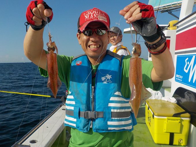 今日も朝からヤリイカ狙いで出船しました。前半は潮が速くおまけにサバの邪魔が入り釣り辛かったですが中盤からポツポツ乗りヤリイカ初挑戦の方が数名いましたがなんとかお土産を確保出来ました。明日以降もヤリイカ狙いで出船となります。ただ場合によってはスルメを狙う時があるので仕掛けは11」cmと18cmの仕掛けをご持参ください。オモリは150号となります。