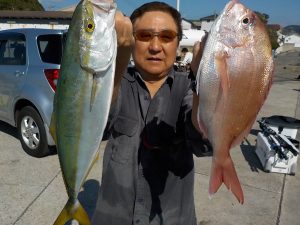 マダイ&ワラサ船 2017年10月10日マダイ&ワラサ, 釣果速報イナダ, コマセ, コマセ釣り, マダイ, ワラサ, 千葉県, 東京湾 明日のマダイ&ワラサ船ガラガラですので皆様のご乗船お待ちしております。 本日の釣果 マダイ 0.3~1.2kg 0~1匹 ワラサ 3.2~3.6㎏ 0~2匹 イナダ 1.0~1.2kg 1~10匹 朝は勝山沖でマダイの顔を見てからワラサ狙いに変更しました。ポツンポツンと当たるもバラシもあり中盤小移動してからはイナダの入れ食いタイムもあり皆さんお土産を確保出来ました。 関連