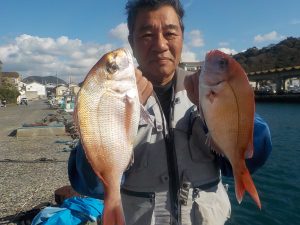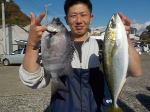 マダイ&ワラサ船 2017年11月7日マダイ&ワラサ, 釣果速報イナダ, コマセ, コマセ釣り, マダイ, ワラサ, 千葉県, 東京湾 ★★★9日と12日ヤリイカ狙いで出船します。皆様のご乗船お待ちしております。★★★ 本日の釣果 マダイ 0.3~4.2kg 0~3匹 ワラサ 3.5~4.8㎏ 0~2匹 イナダ 1.0~1.2kg 0~3匹 他にカンパチ 朝は勝山沖でマダイの顔を見てからワラサ狙いに変更しました。到着して暫くしてから当たりが出始めポツポツ食いがあり後半にはダブルヒットなどもありオデコの方が1名出てしまいましたが釣果的にはまずまずの釣果となれました。 関連