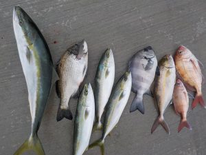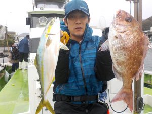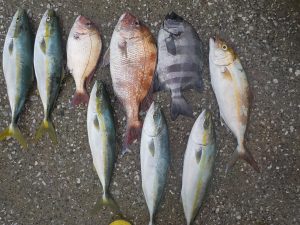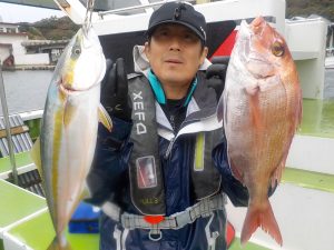 マダイ&ワラサ船 2017年11月18日マダイ&ワラサ, 釣果速報イナダ, コマセ, コマセ釣り, マダイ, ワラサ, 千葉県, 東京湾 明日の乗合はマダイ&ワラサ船で出船します。空いておりますので皆様のご乗船お待ちしております。 本日の釣果 マダイ 0.4~1.7㎏ 1~3匹 ワラサ2.8~3.5㎏ 0~1匹 イナダ 1.0~1.2㎏ 3~5匹 他に カンパチ、イシダイなど 朝は勝山沖でイナダとマダイがポツポツ食い皆さん顔を見てからワラサ狙いに変更しました。潮が速く釣り辛かったですがポツンポツンと当たり潮止まりで食いが落ちた為朝のポイントに戻りマダイ、イナダ混じりで食いが続き皆さん魚種多彩でお土産には十分な釣果となれました。 関連