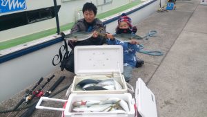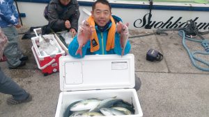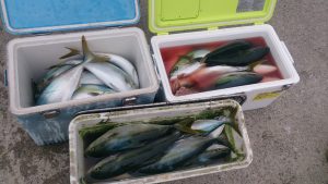 マダイ&イナダ船 2017年12月31日マダイ&ワラサ, 釣果速報イナダ, コマセ, コマセ釣り, マダイ, ワラサ, 千葉県, 東京湾 新年は元旦出船!2日出船!3日休船。4日より通常出船となります。 本日の釣果 マダイ 0.3~1.0kg 0~3匹 イナダ 1.0~3.2kg 14~42匹 朝は勝山沖でマダイの顔を見てから久里浜沖へ移動しました。中盤から食いが立ち入れ食い状態が続き後半に入ると更に食いが活発になり皆さんクーラー満杯以上で今年の釣り納めには十分な釣果となれました。 関連