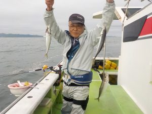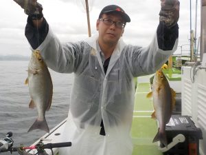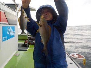 イサキ船 2018年6月21日イサキ, 釣果速報イサキ, 勝山, 千葉県 イサキ食い順調!!!明日も出船確定しておりますので皆様のご乗船お待ちしております。 本日の釣果 マアジ 30~40cm 4~10匹 イサキ 23~59cm(最大1.9㎏) 18~34匹 朝のマアジ狙いは群れが動いている為かポツポツの食いでした。その後のイサキ狙いは食いが順調で良型も多く最大で59㎝1.9㎏の超特大サイズも混じり皆さんお土産を確保出来ました。 関連