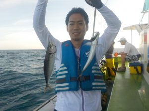 イサキ船 2018年7月3日イサキ, 釣果速報イサキ, 勝山, 千葉県 イサキ順調 !!! 本日の釣果 イサキ 22~36cm 7~34匹 マアジ 30~40cm 2~8匹 前半のマアジ狙いはポツポツながらも良型主体で皆さん顔を見る事が出来ました。 その後イサキに変更し単発が殆どではあったもの食いが順調で大型のハリス切れなどもありましたが皆さんお土産には十分な釣果となれました。 関連