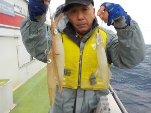 ヤリイカ船 2018年12月9日ヤリイカ, 釣果速報ヤリイカ, 勝山港, 千葉県 ヤリイカ後半順調!!12日は定休日でお休みとなります。 本日の釣果 ヤリイカ 20~40cm 12~35匹 朝は近場で顔を見てから白浜沖へ移動しました。前半は海が悪く乗ってもバラシが多かったですが後半に入り流し放しでポツポツ時折多点掛けを交えながら順調な乗りがありました。貸し竿でヤリイカ2回目の方もツ抜けすることが出来ました。 関連
