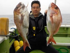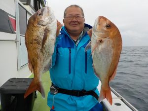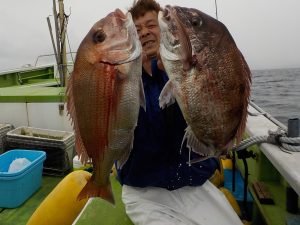 マダイ船 2019年5月15日マダイ, 釣果速報コマセ釣り, マダイ, 勝山港, 東京湾 マダイ連日好調!!!オデコなし!!明日も出船します。マアジ&イサキリレー船ともに空いておりますので皆様のご乗船お待ちしております。 本日の釣果 マダイ 0.8~4.0kg 2~4匹(4匹が3名) 前半はポツポツの当たりでしたが中盤小移動してからが活発で小移動直後1投目にトリプルヒットがありその後も反応が出てくると当たる状態が納竿まで続きバラシやハリス切れもありましたが好釣果となれました。 関連