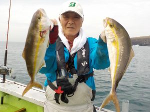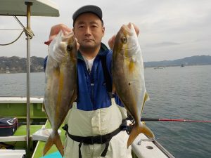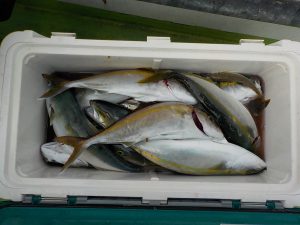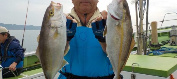 マアジ泳がせ五目船 2019年10月27日マアジ, 釣果速報コマセ, マアジ, 勝山港, 千葉県 イナダポツポツながら順調!!!明日はマアジ泳がせ五目船のみの出船となります。空いておりますので皆様のご乗船お待ちしております。 本日の釣果 イナダ 40~50cm 4~23匹 カンパチ 0.8~1.3kg 0~4匹 終日ポツポツながら当たりが出て派手な食いは無かったものの慣れない方を含め皆さんお土産を確保できました。 関連